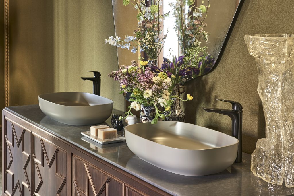 A csaptelepek körüli koncepció az, ami inspirációként szolgált a belsőépítész számára, hogy kísérje és erősítse az időtlenséget és a minőséget. A Metallic Harmony egy olyan fürdőszobát hoz létre, ahol az építészeti hagyományok egybeolvadnak a kortárs designnal, amely négy térre oszlik: egy mosdótér Metallic mosdókagylókkal és csaptelepekkel, zuhanyzótér, egy intimebb terület a WC és a bidé számára, és – a fürdőszoba közepén való elhelyezkedése miatt a főszereplő – a kád, egy kis pihenőhellyel.