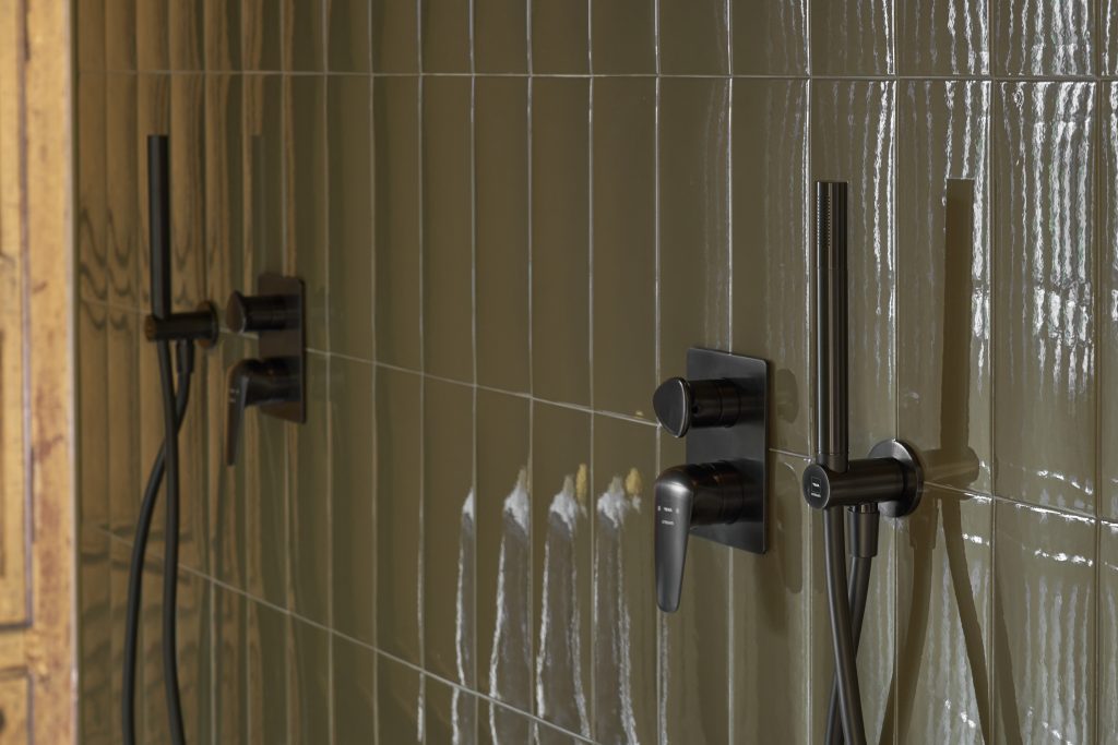 A dupla zuhanyrendszer teljesen idegen a 1900-as évek elején lévő építészettől, ezért integrálva van, mert külső része ugyanolyan hatást ad, mint a többi tapétázott fal és a beépített szürke terrazzo padló, hogy egyesítse ezt a teret a többi helyiséggel. Kiemelkedik belőle a két beépített zuhanyrendszer mennyezeti zuhanyfejekkel, háromszög alakzattal, amely a geometrikus tervezést hangsúlyozza az Itaca kollekció részeként.